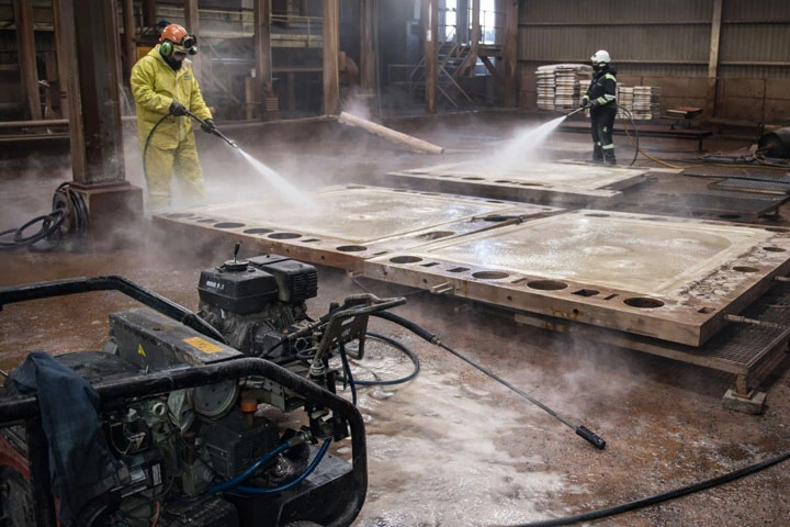 Eliminamos residuos, grasa y contaminantes mediante lavado químico y limpieza a presión de hasta 7500 PSI.